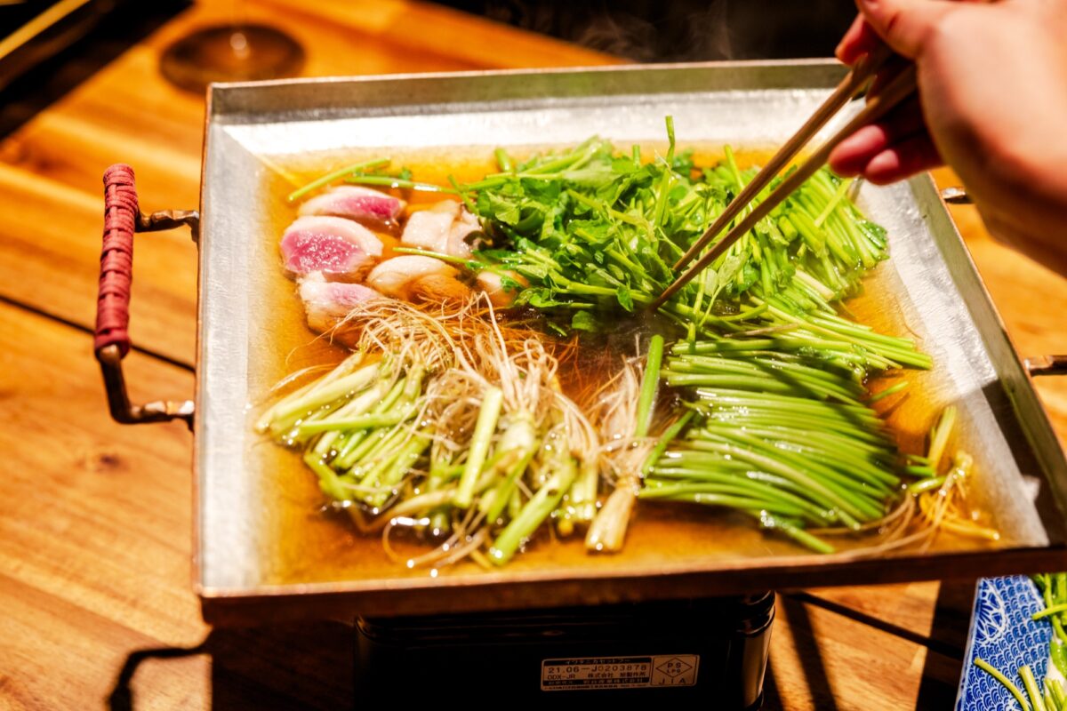 先將雞肉或鴨肉放入高湯,待其油脂浮出後將水芹放進湯裡涮個幾下並送進口中,油脂濃厚的香氣瞬間占據整個鼻腔,隨著每次咀嚼,自蔬菜纖維間湧溢而出的鮮美高湯也刺激著味蕾,然而未經久煮的水芹口感爽脆無比,與油脂達成完美的平衡,口中充滿油脂香氣的同時卻一點油膩的感覺也沒有。等到肉和水芹都吃完後,還可以把飽含營養的剩餘湯汁煮成粥或拉麵,為您的水芹火鍋劃上完美的句點。